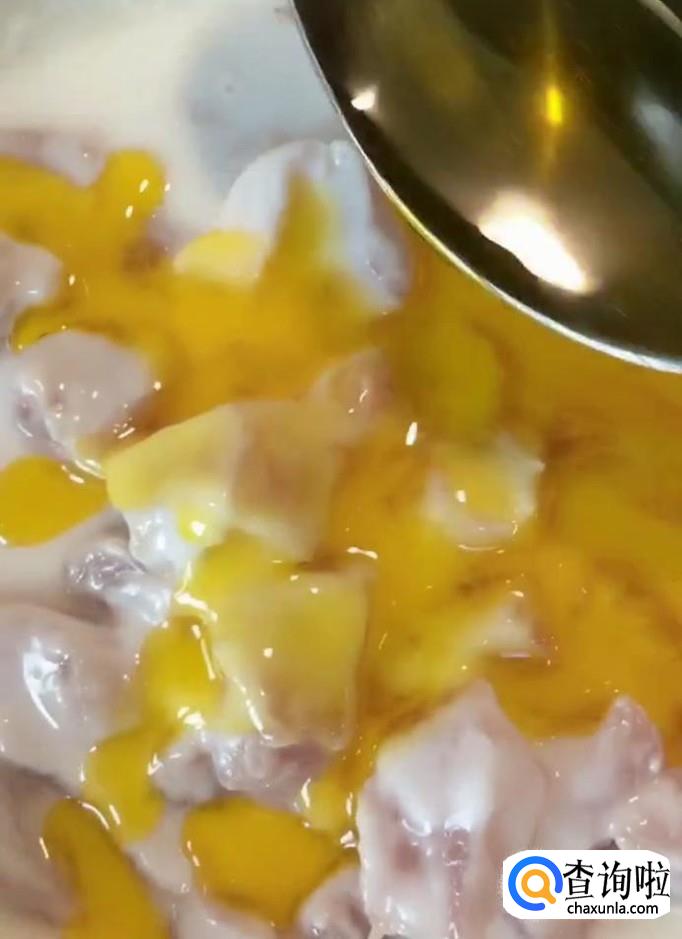 然后我们起锅烧油,油温六成热下入锅中,炸至定型捞出