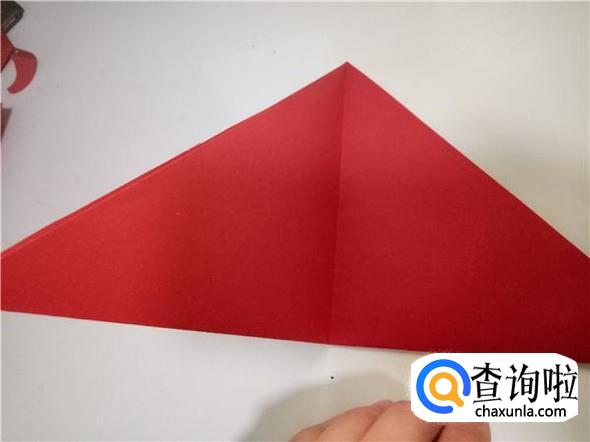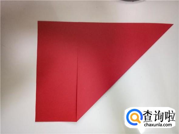 首先我们需要将彩纸的长边和短边对齐,折出一个三角形,如图所示。