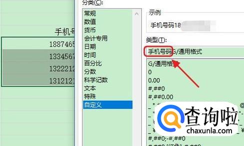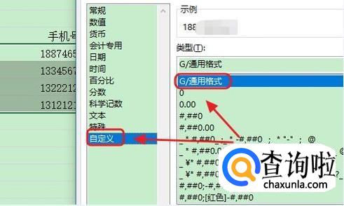 那么如果想要在所有的手机号码前面添加固定文本,并且要求文本和手机号统一对齐又该如何操作呢?我们首先需要将手机号码这一列选中,然后右键点击打开设置单元格格式,然后依次点击“自定义”-“G/通用格式”,如图...