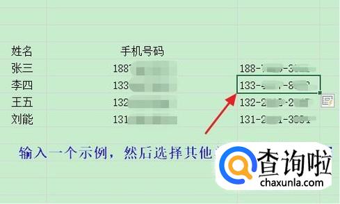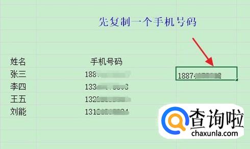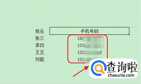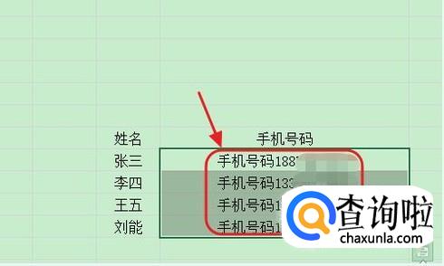 我们只需在格式前面手动输入文本内容即可,比如输入“手机号码”,返回到表格我们会发现文本和手机号均为同一的对齐方式;