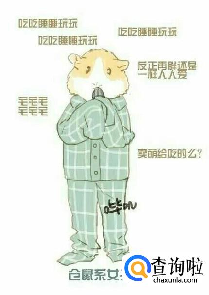仓鼠系女子就是标准的宅女了,他们生活中最大的乐趣就是吃、睡、玩,从来不害怕长胖,因为他们有可爱的性格,即使再胖还是人喜欢,最喜欢卖萌。