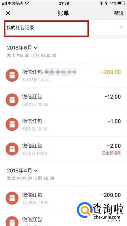 通过以上操作,我们就可以查询到自己微信发出的红包记录了。