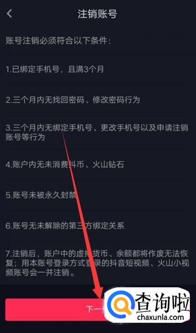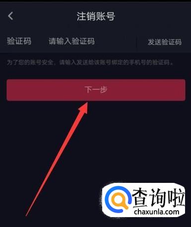 进入之后,获取验证码并填写上,点击“下一步”即可完成注销账号,如图所示。