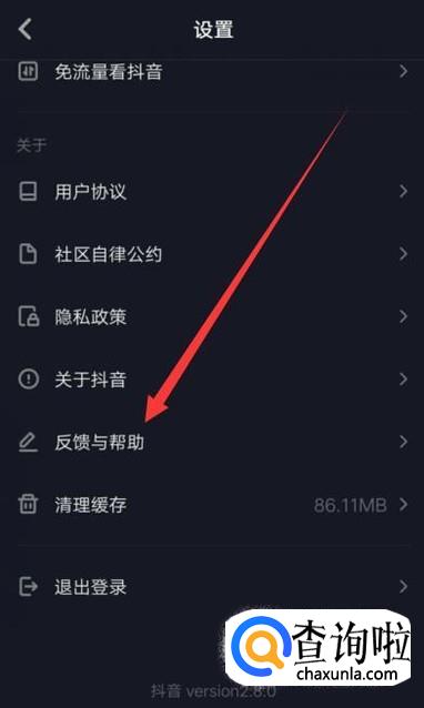 进入之后,选择“反馈与帮助”,进入下一页面,如图所示。