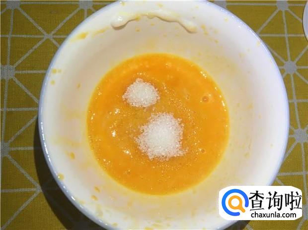 把蛋黄均匀打散,然后两勺白砂糖,打散均匀,然后把一盒牛奶倒入,用筷子搅拌均匀即可。