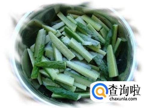 首先我们需要用清水把老黄瓜清洗干净,然后把老黄瓜切成条状备用,用盐腌一腌老黄瓜,这样子可以排除黄瓜内多余的水而且可以让黄瓜更加有味道。