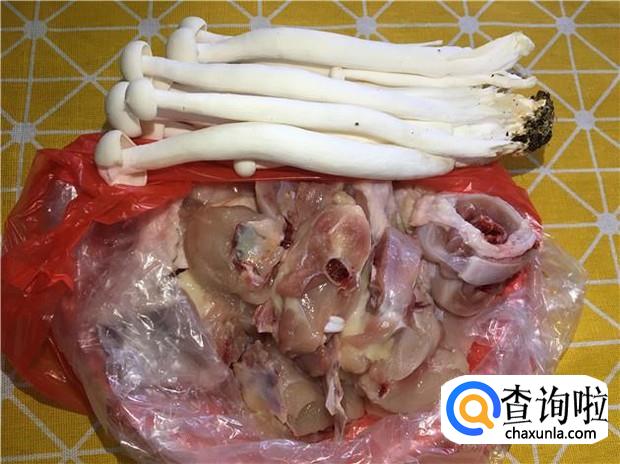 把食材提前准备好,半边鸡、海鲜菇适量、老姜一块。