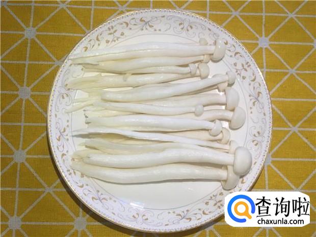 海鲜菇去掉根部,清洗干净,丝成两半,这样好入味。