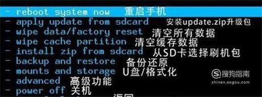 这时候使用音量键来移动光标,分别选择“清除所有缓存”和“清除所有数据”,然后保存设置。