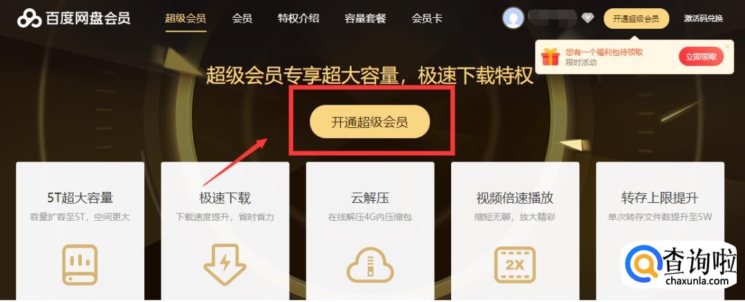 方法一:开通百度网盘超级VIP
