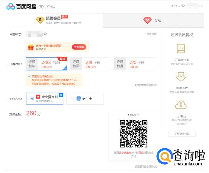 选择你要开通的时长后,扫码支付即可。