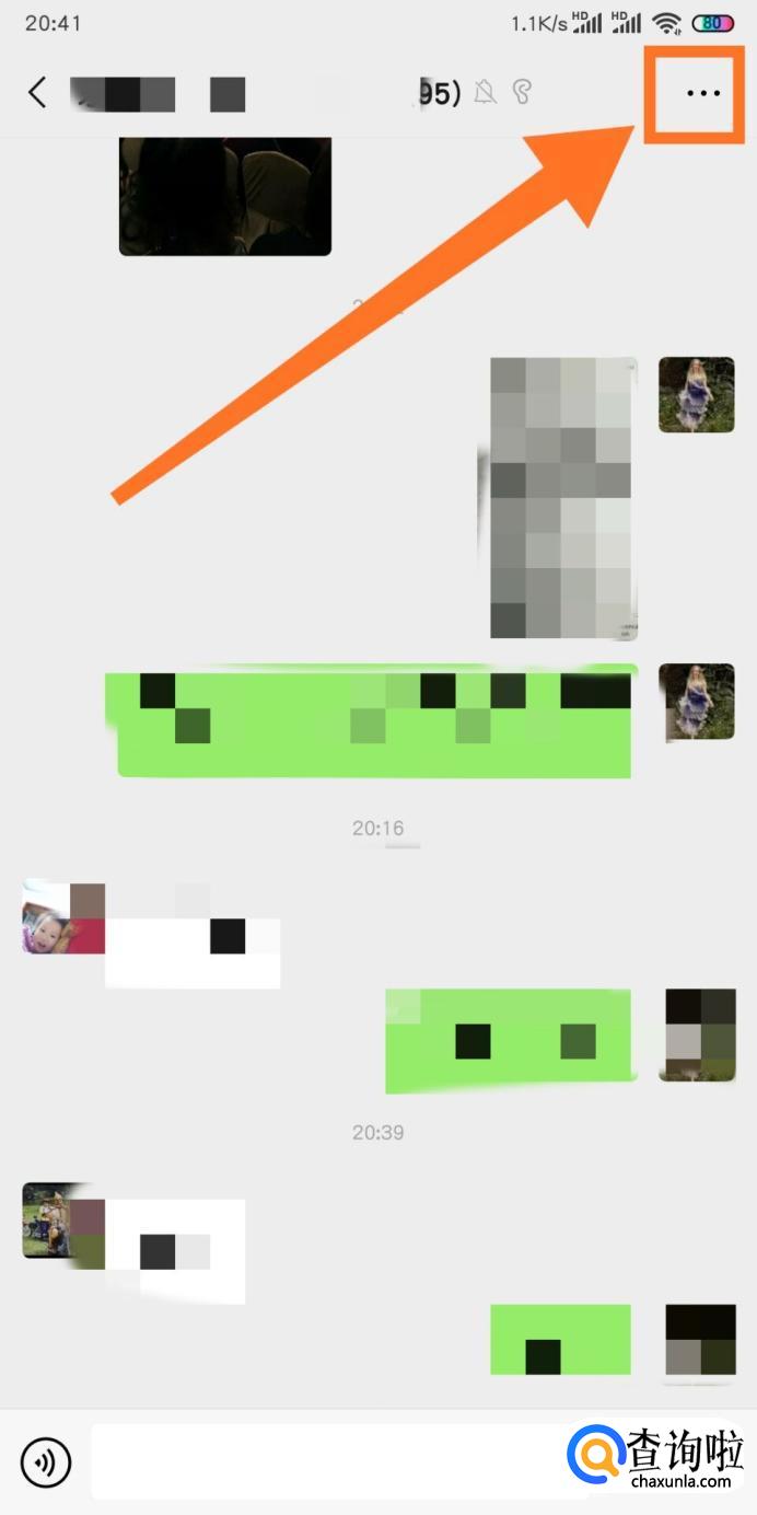 进入聊天界面之后我们点击右上角的三个圆点。