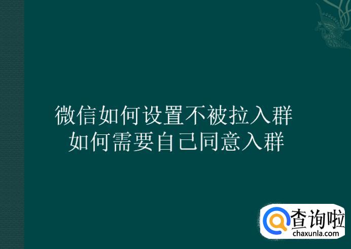 微信如何设置不被拉入群 如何需要自己同意入群