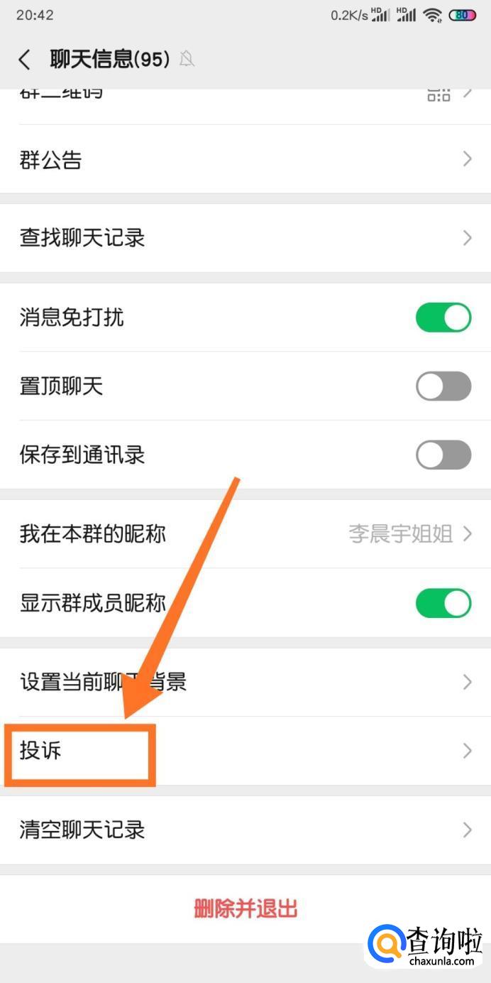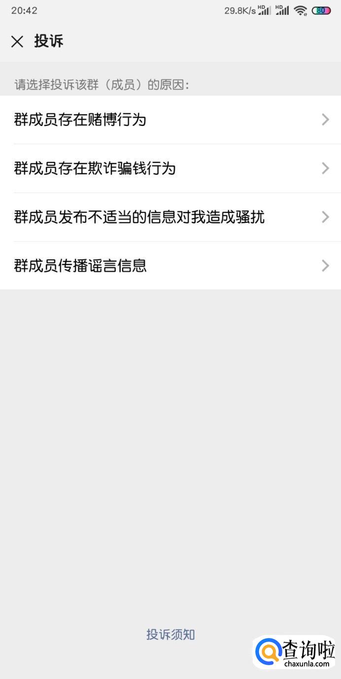 然后我们就对该群进行投诉。
