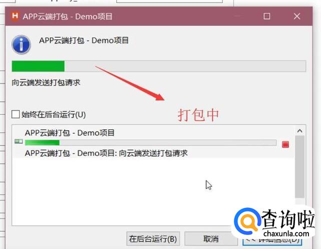 最后点击打包按钮,我们就可以看到APP进入了打包状态,如下图所示
