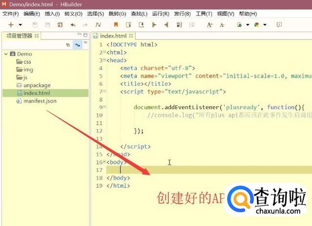 然后回到Hbuilder主界面,我们就可以看到创建好的APP目录结构了,如下图所示,大家可以自己在主页面添加一些内容