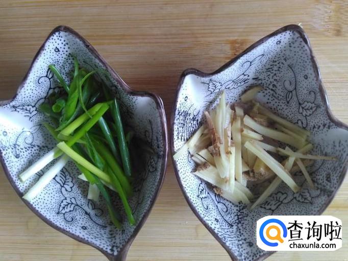 把泥猛鱼清洗干净,姜丝、香葱丝准备好。
