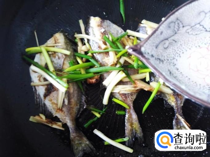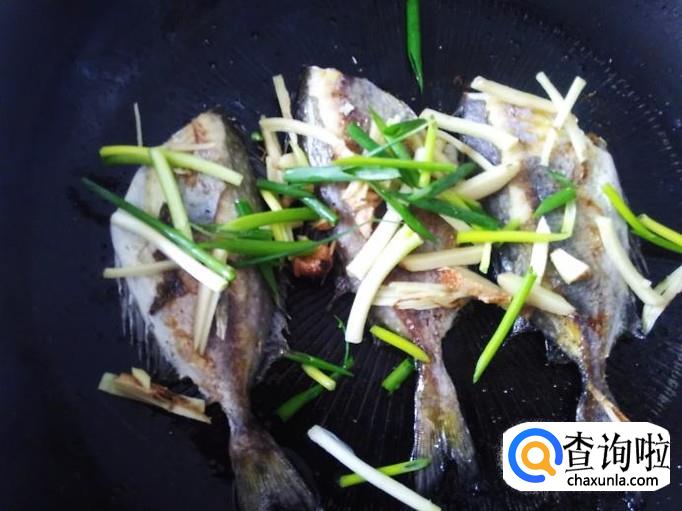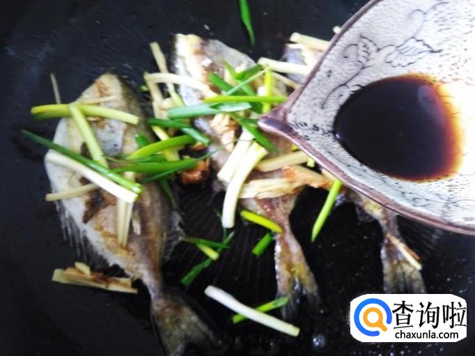 煎至两面金黄色,然后放姜丝、香葱进去,浇1勺生抽。