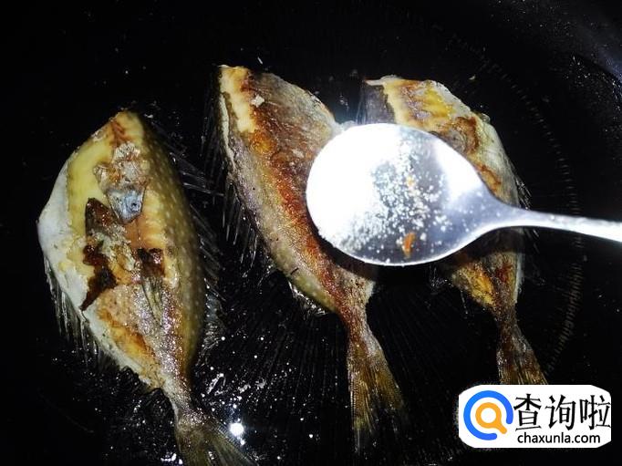 煎4分钟左右,把鱼翻转过来,然后再撒少量的盐花。