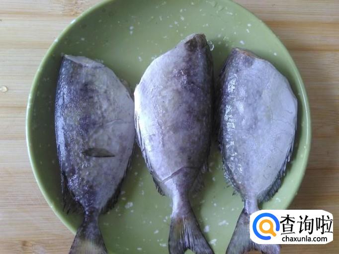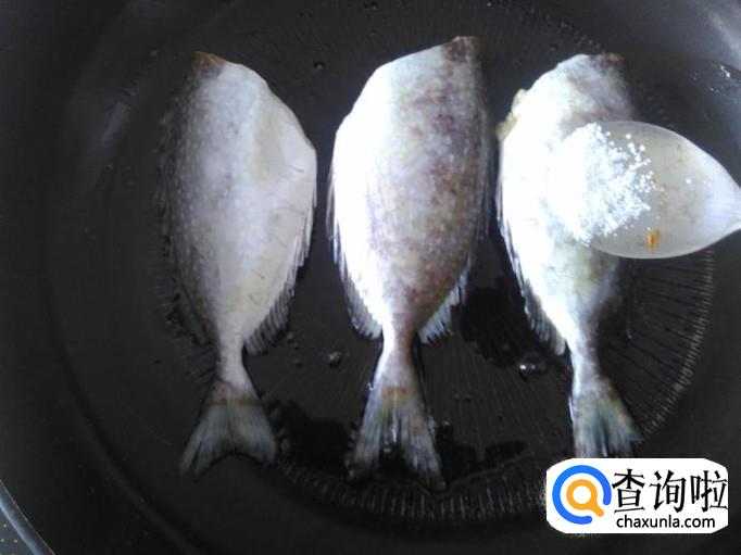 热锅起油,然后把鱼摆进去,撒少量的盐花用小火煎。