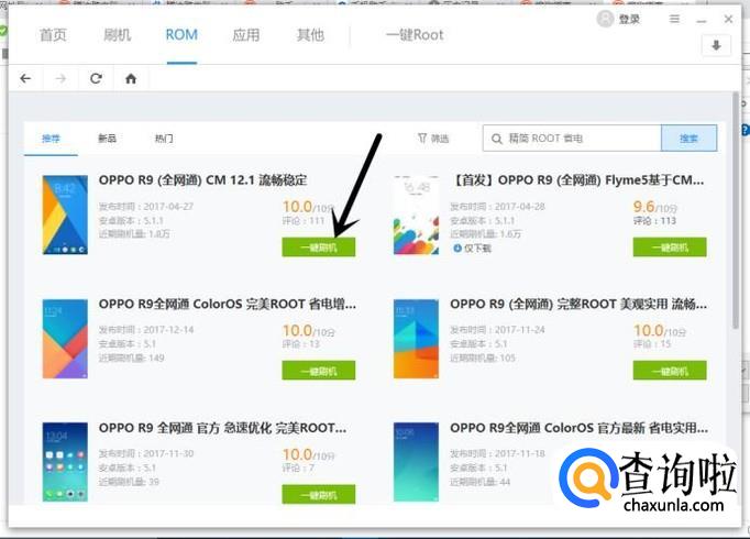 搜索出oppor9m刷机包后,选择一个自己喜欢的,点击 一键刷机