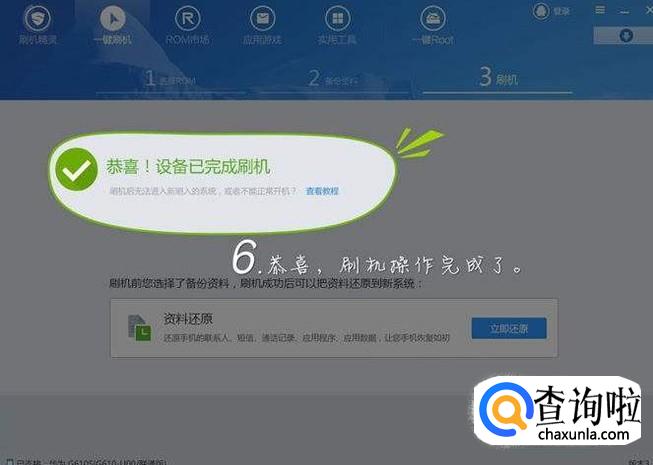然后稍微等待一下,系统提示刷机成功后就可以了