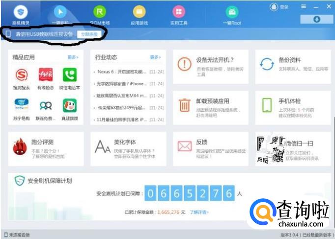 安装完成后,回到桌面双击 刷机精灵 启动软件
