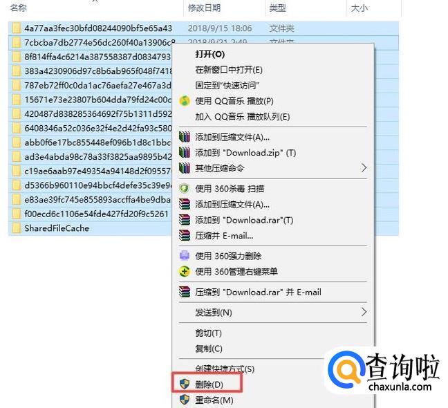 弹出的界面,里面就是win10更新安装包了,我们选中所有文件夹,然后右击选择删除就可以了。