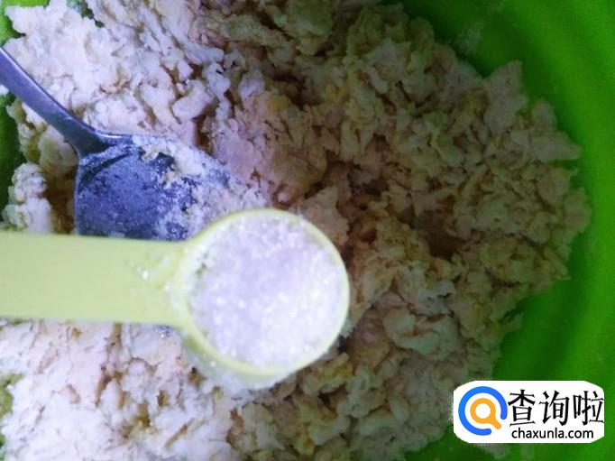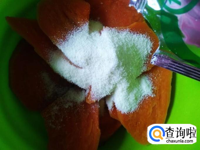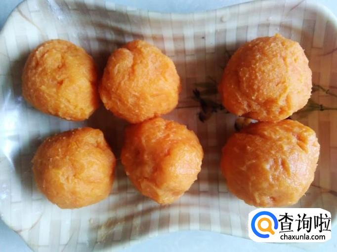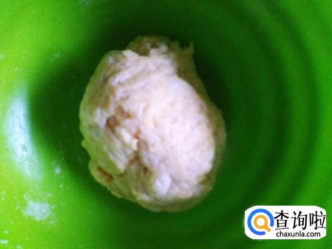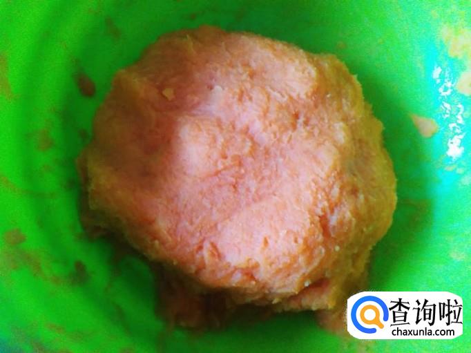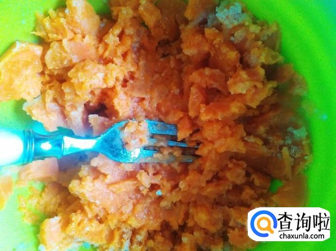 然后用叉子把红薯压成薯泥,再搓揉成粉团。