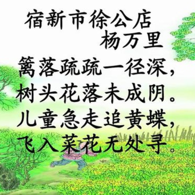 《宿新市徐公店二首》是宋代诗人杨万里的组诗作品,主要描写乡村田园风光。表明诗人对田园情怀的敏感度。全诗语言清新,形象鲜明,富有情趣。这组诗当作于宋光宗绍熙三年(1192)。彼时杨万里正任江东转运副使,任所是在建康(今江苏南京)。