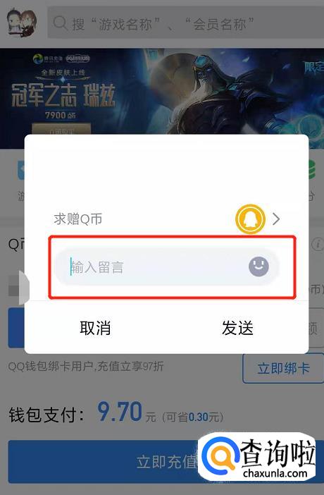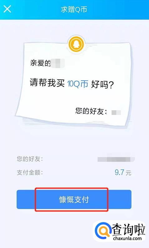 选择一个可以帮忙代付的好友,输入想留的言,然后点击发送,就可以将所要消息发送到别人的QQ,只需等待好友支付即可。