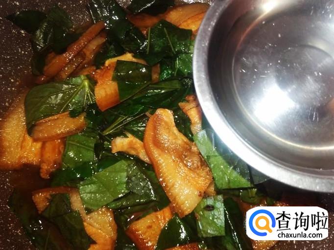打开盖子翻炒一下,熄火。香喷喷的假蒌炒猪头皮就做好了。