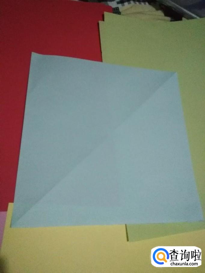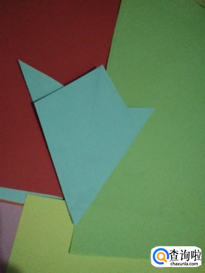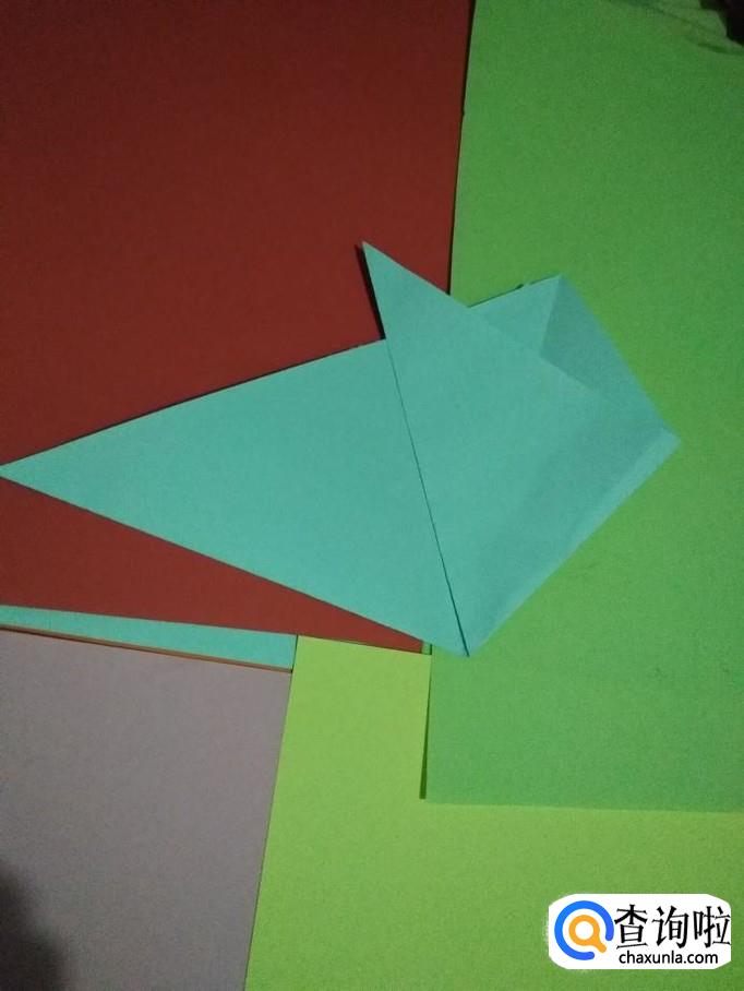 然后把彩纸翻转,翻转后重叠折合,如图