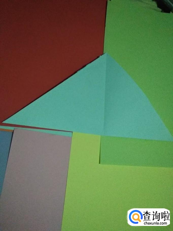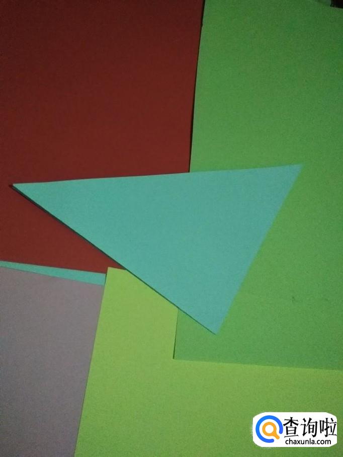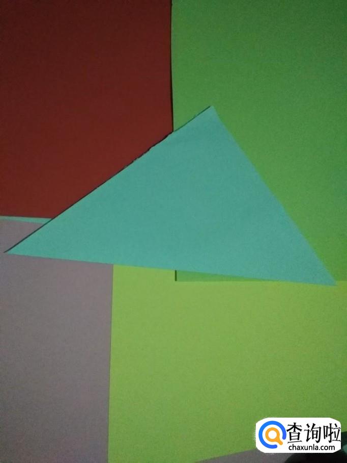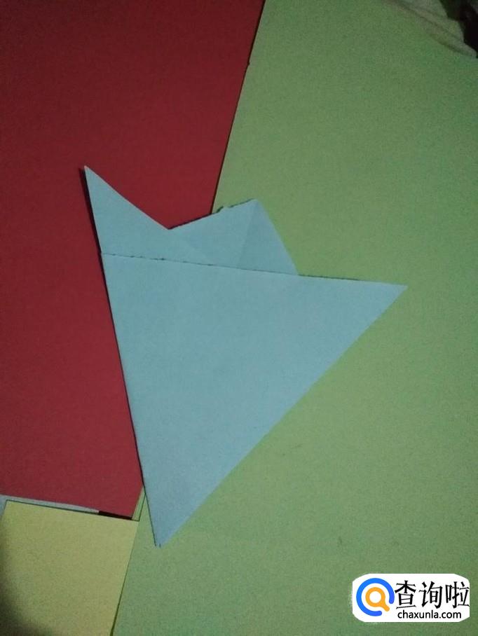 然后再次对折成小的三角形压出折痕后打开,如图