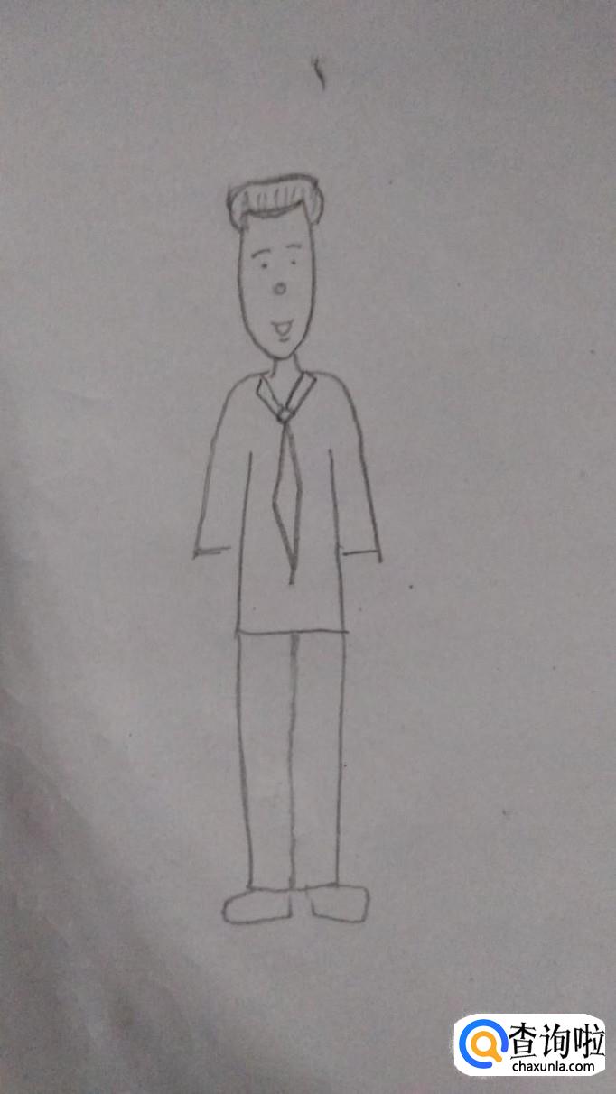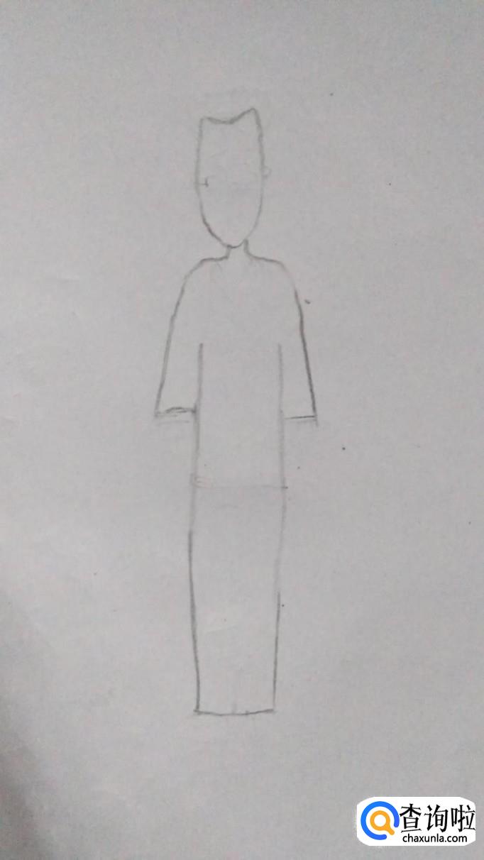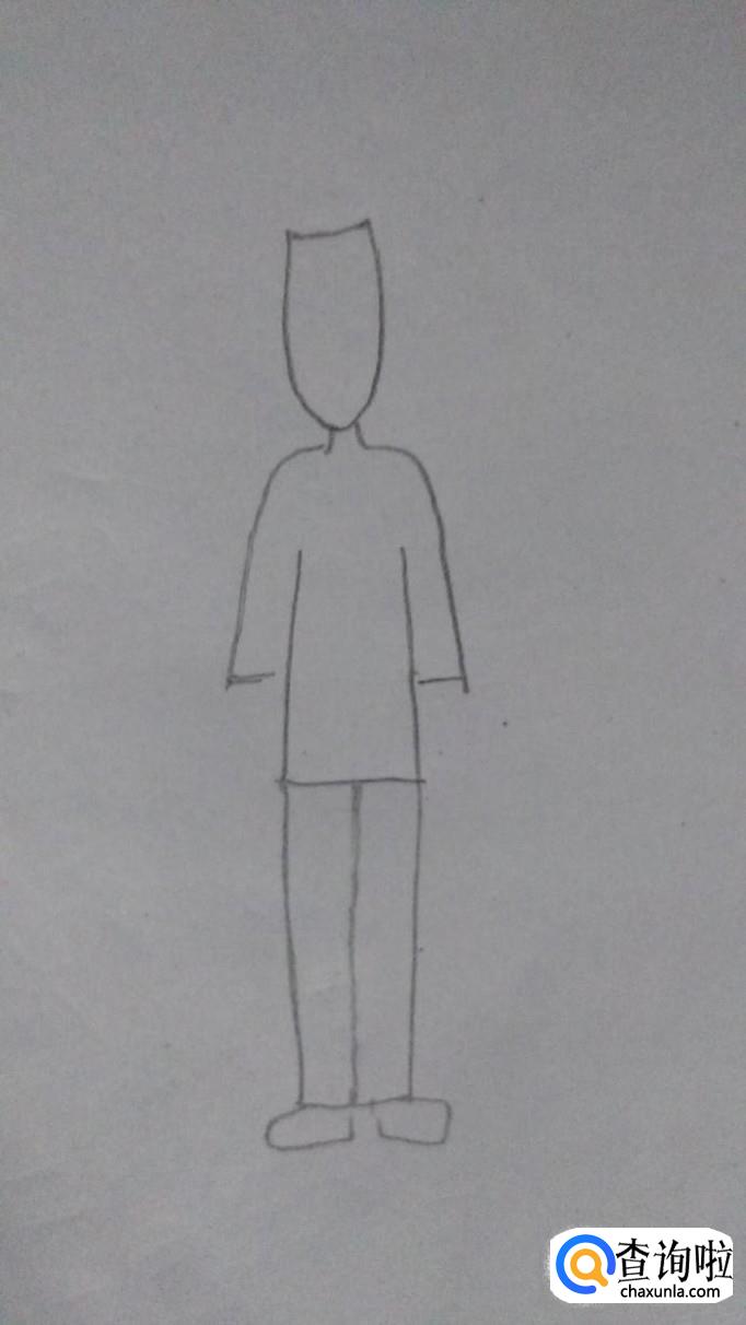 然后用一些简单的线条把外形分划清楚,能看出来是一个高高瘦瘦的卡通形象。