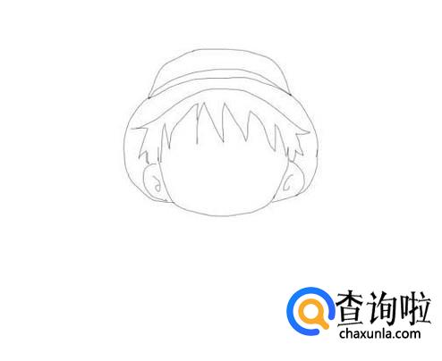 画好帽子之后在帽子的下面画出出路飞的头发,如图所示: