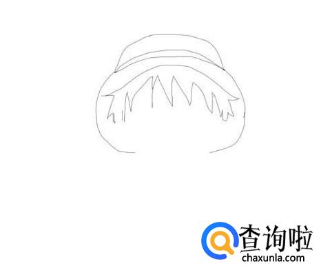 首先我们画出路飞的帽子,然后在帽子上画出结构线,如图所示: