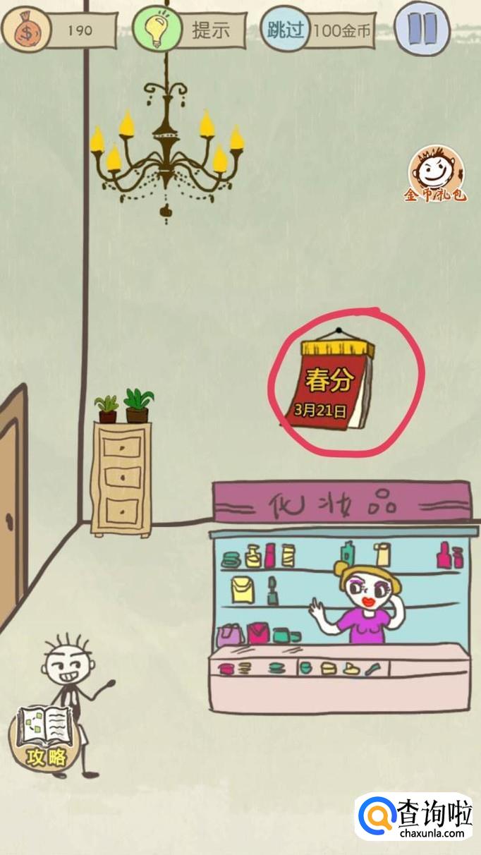 第十九关:点击日历改为冬至,然后点击门让史小坑出去