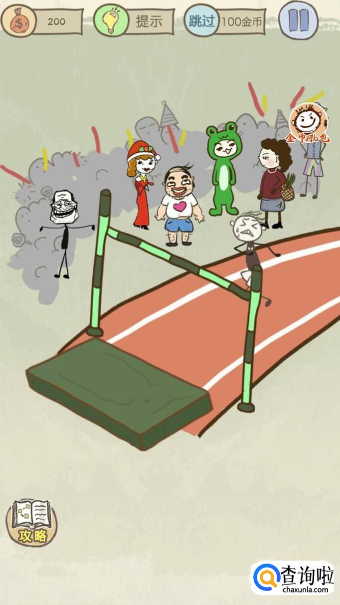 第二十关:在史小坑起跳之前,点击拖动垫子让他安全落地,尽量点击垫子中间,多试几次即可。