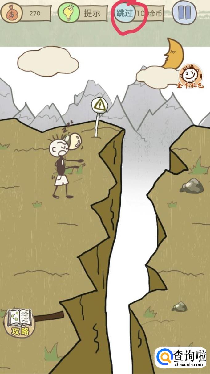 第十七关:在史小坑走到悬崖之前,点击上面的跳过按钮就行了。