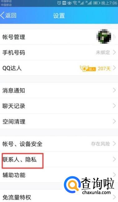 弹出的界面,我们点击联系人、隐私;