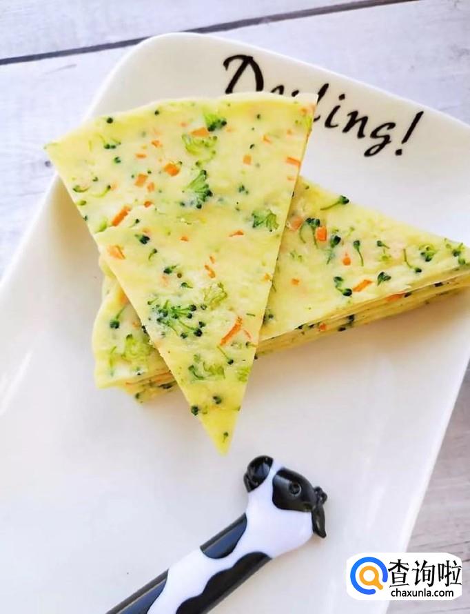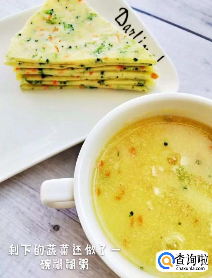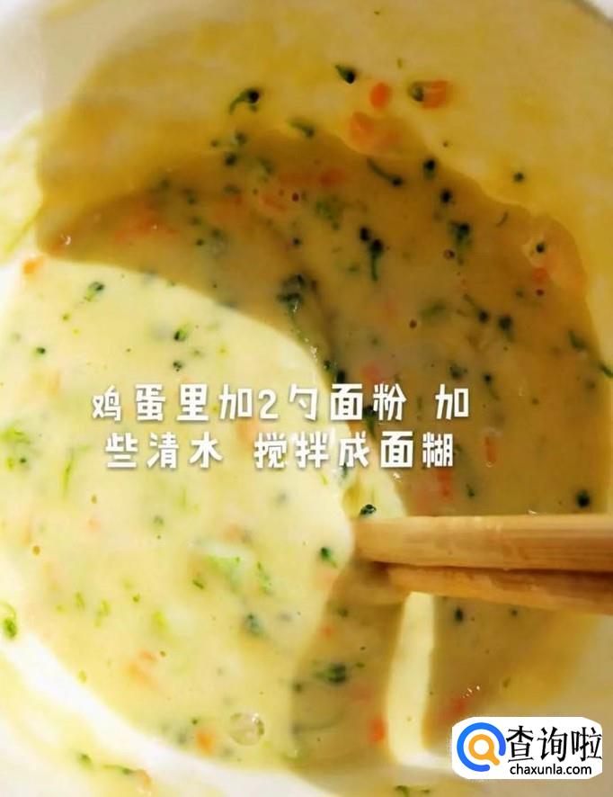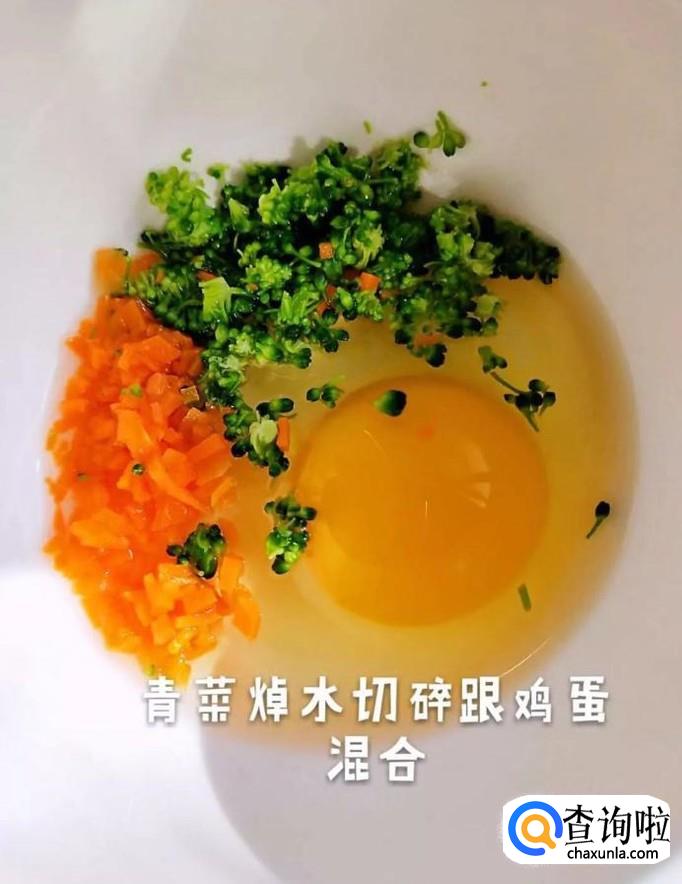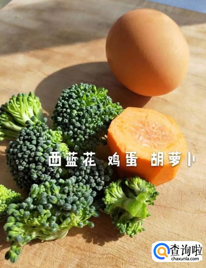 食材:西兰花、胡萝卜、鸡蛋、面粉2勺。