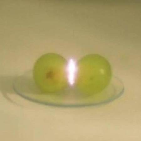 物理学家研究发现,这其实是一种叫做等离子体的物理现象。原来,在微波炉运行时,这些水果的接触点会产生强大的电场,这些集中起来的能量被传递给水果里天然存在的钠离子、钾离子等盐类物质,于是产生了等离子体,放出耀眼的光芒……