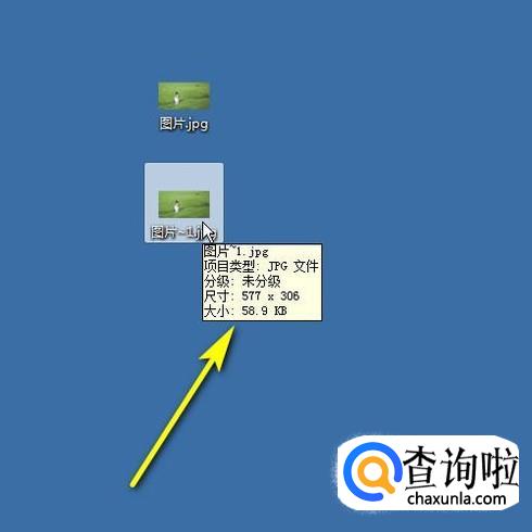 很快就操作完成,关闭软件,转到桌面上,可以看到,图片长宽尺寸大小不变,内存已调整为58.9K