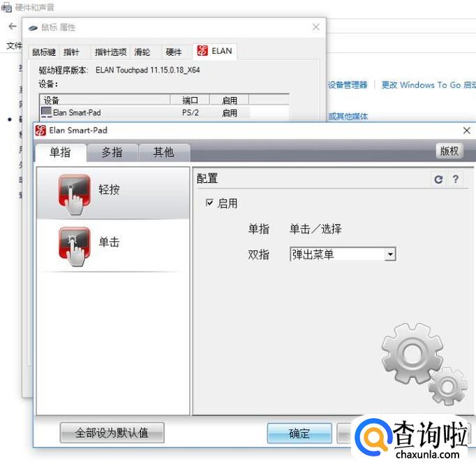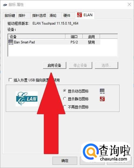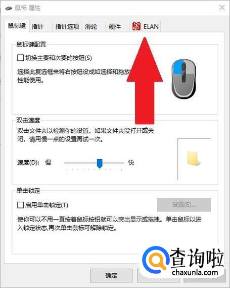 接着点击进入鼠标属性对话框最右边的“ELAN”。