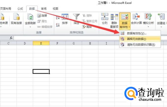 点击菜单栏的“数据”,然后点击“数据有效性”,然后选择“数据有效性”,如图所示。