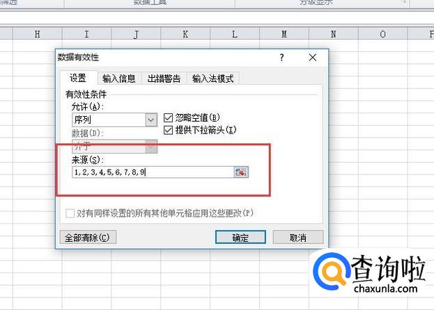 在“来源”的位置设置想要设置的下拉选项,以图示为例,然后点击“确定”。