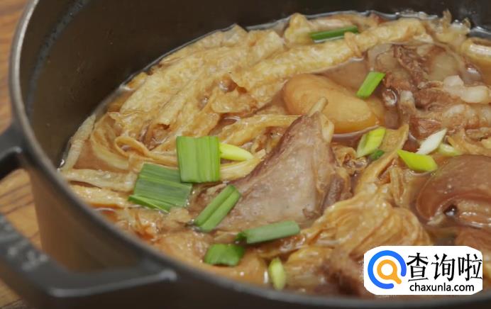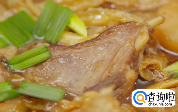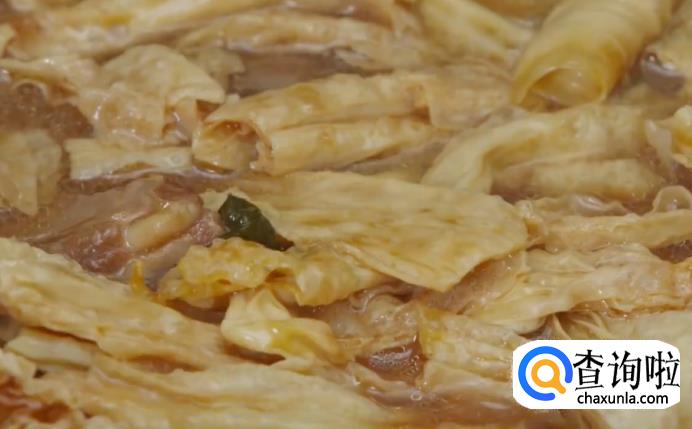 等羊肉炖得差不多了,就可以把腐竹下进去,开大火煮至腐竹变软。