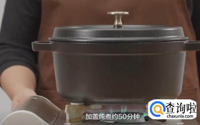 大火煮沸后转小火,盖上锅盖炖煮50分钟左右。