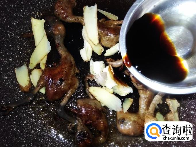 屈头蛋里的乳鸭5只,姜片、蒜米、香葱适量,1勺生抽、1勺料酒。